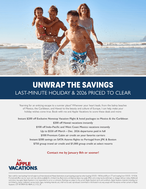 Yearning for an enticing escape to a sunnier place? Wherever your heart leads, Apple Vacations can help make your travel wishes come true. Instant $200 off Exclusive Nonstop Vacation Flight & hotel packages and more!
